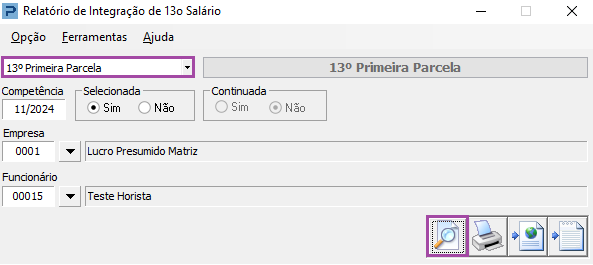 2- Gerar Relatório de Integração de 13º Primeira Parcela