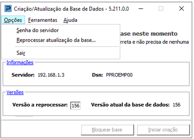 4-No Gerenciador de aplicativos Prosoft acesse: Parâmetros Gerais > Rotinas Auxiliares > Criação/Atualização da Base de Dados