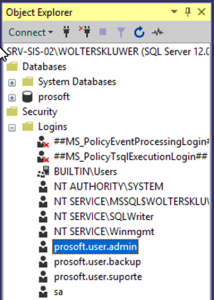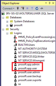 6-No SSMS é possível identificar que os usuários prosoft.app.admin e prosoft.app.user foram criados após o procedimento