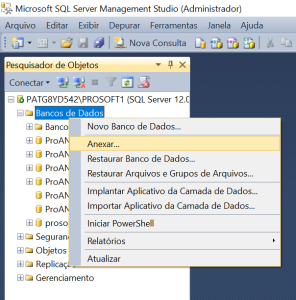 IMPORTANTE: A base de dados Prosoft do cliente será temporariamente desanexada, como medida de segurança faça um backup da pasta C:\SQL2014\DADOS