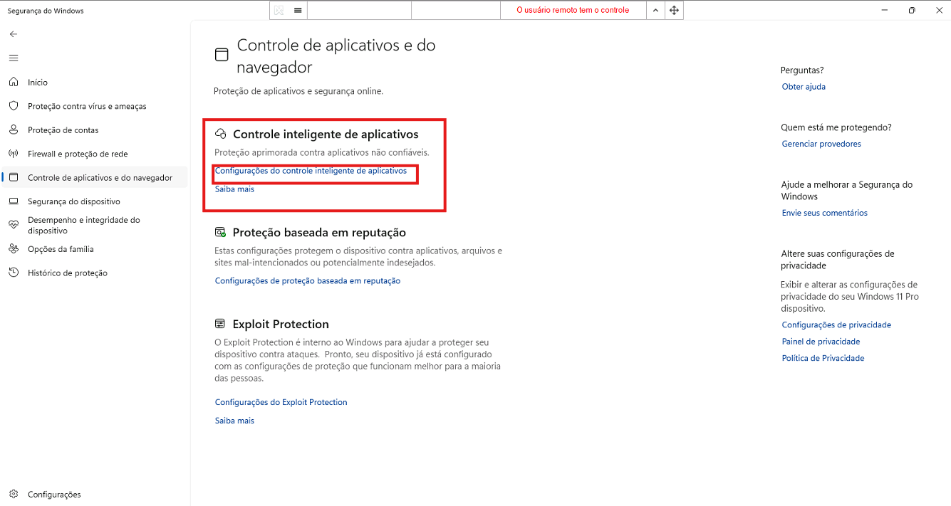 2. Acesse a aba Controle de Aplicativos e do Navegador > Controle Inteligente de Aplicativos > Configuração de Controle Inteligente de Aplicativos e a desative.