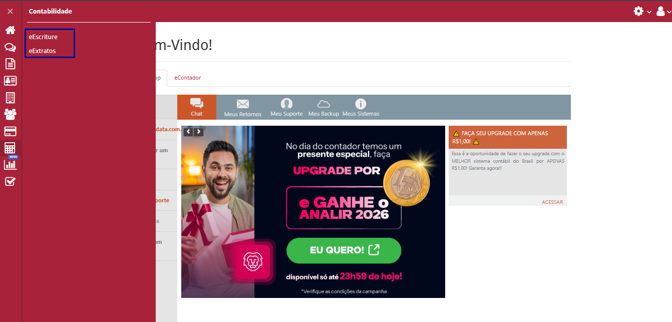 o eExtratos e o eEscriture funcionam como uma dupla inseparável! Para que o eExtratos possa fazer o trabalho de capturar e organizar seus extratos bancários, ele precisa do eEscriture. É como se um fosse a mão que pega os dados e o outro fosse o cérebro que entende e arruma tudo.