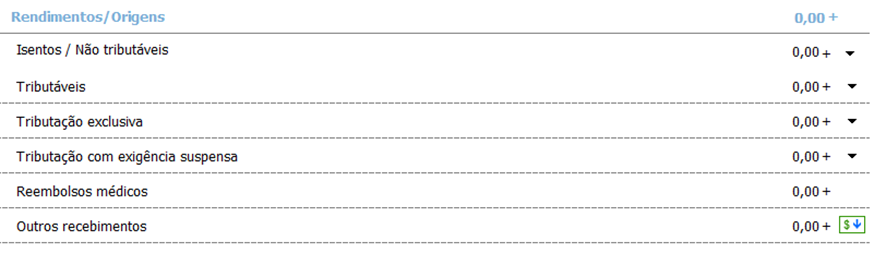 Cada titulo terá seu subtotal que será somado ao valor totalizador na linha Rendimentos/ Origens.