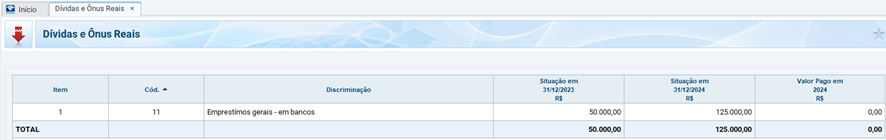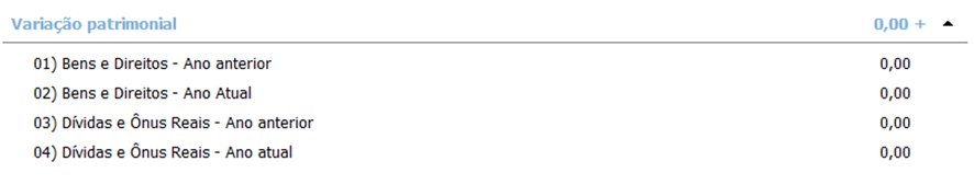 Será considerada a variação patrimonial dos Bens e Dívidas