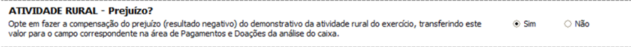 Para o campo de atividade rural é necessário que o parâmetro ATIVIDADE RURAL – PREJUÍZO na análise de caixa esteja como SIM