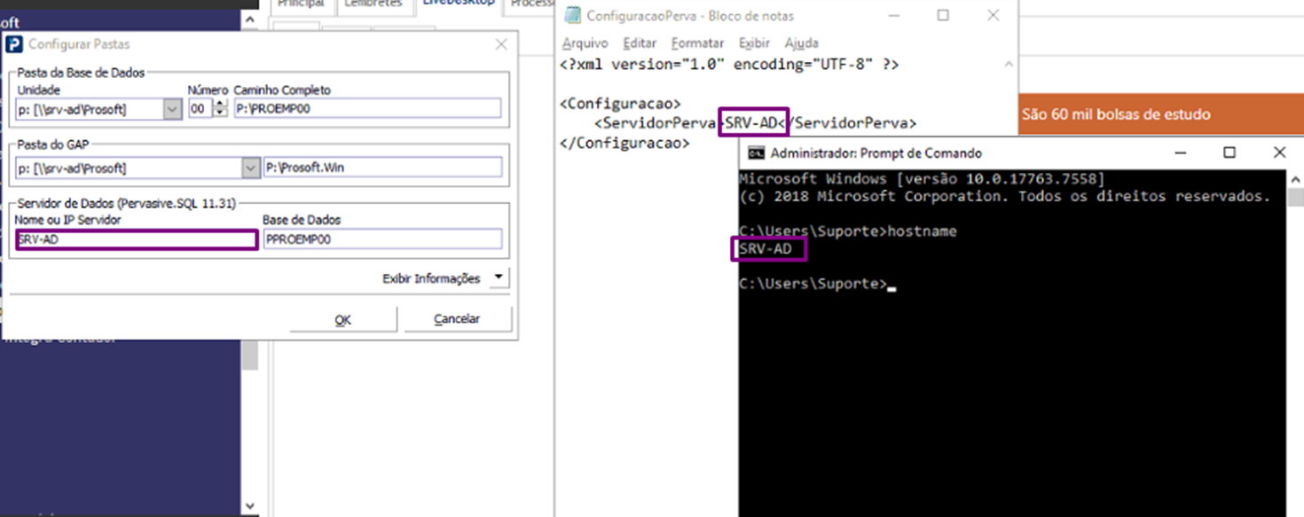 - Compare com a configuração existente no F3 – Controle de Pastas (conforme CMD) no Gap Prosoft.