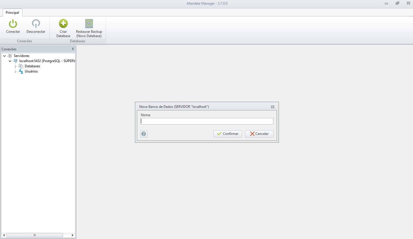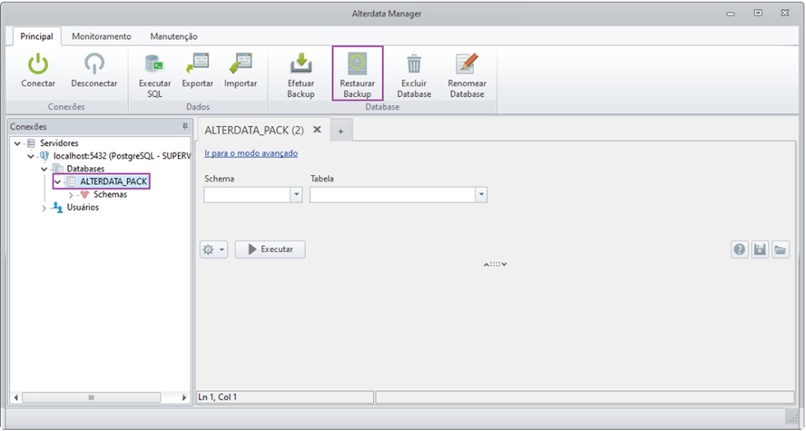 Selecione a base de Dados Alterdata_Pack e clique em Restaurar Backup