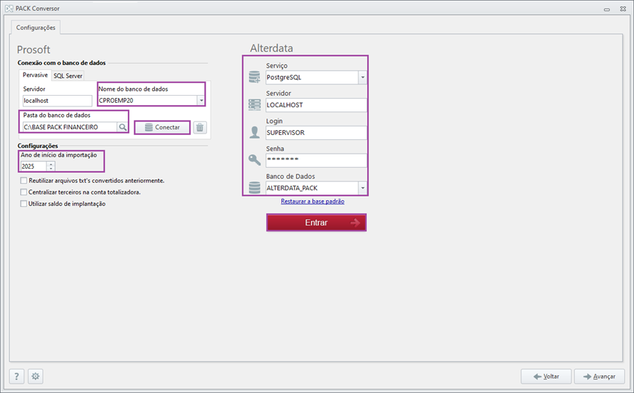 Este guia detalha o processo de conversão dos dados da Prosoft para o sistema Pack Financeiro. Siga as instruções abaixo para garantir que a migração ocorra sem problemas.