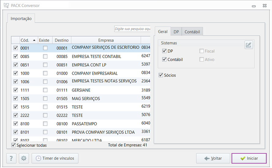 - Será apresentada a lista de empresas que serão migradas, clique em Iniciar: