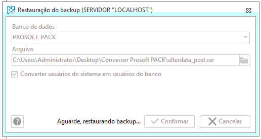 - Selecione a base de Dados PROSOFT_Pack e clique em Restaurar Backup
