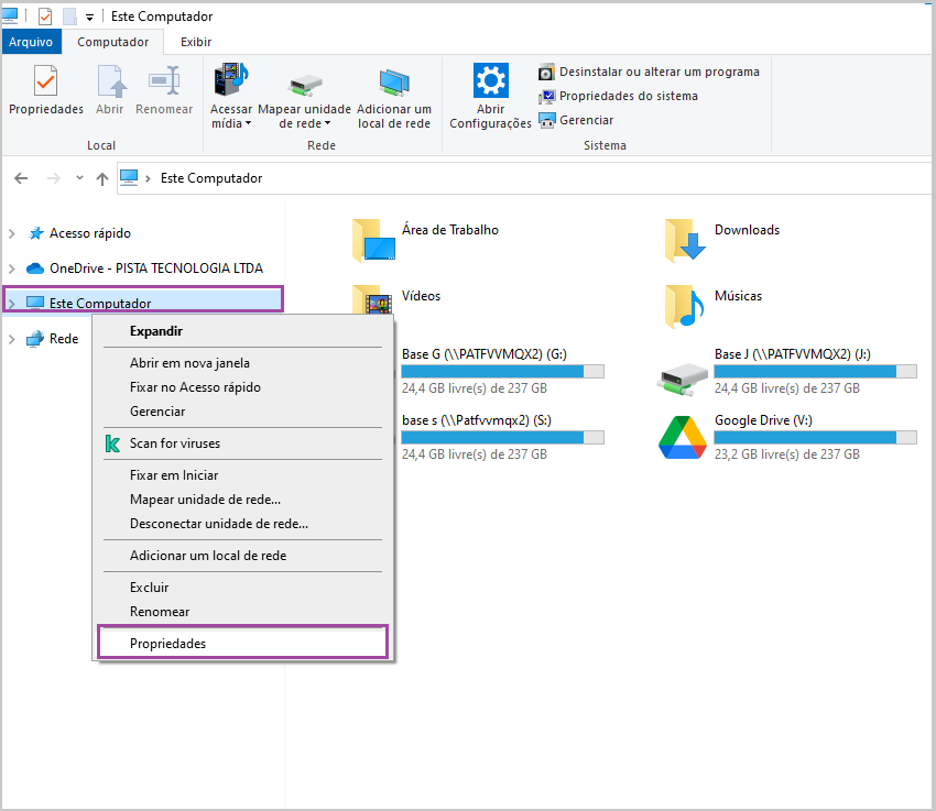 1- Clique em "Meu Computador" com o botão direito do mouse e clique em Propriedades