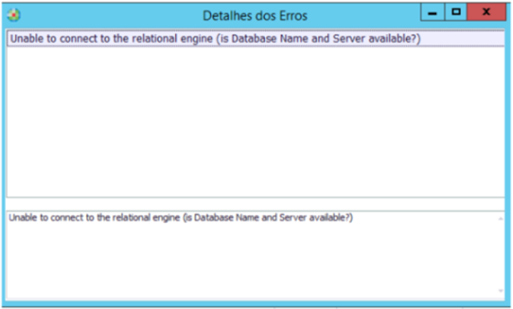 Este arquivo, contém as orientações sobre a correção do erro Unable to connect the relational engine (is Database name and Server available?) no monitoramento de integrações.