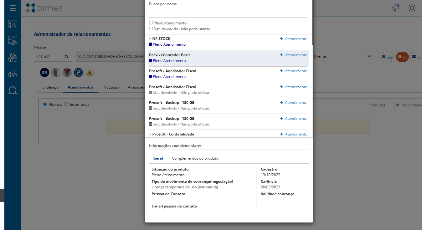 Essa mensagem ocorre quando não há liberação do produto do econtador para o CRM do Cliente no portal Conexões.
