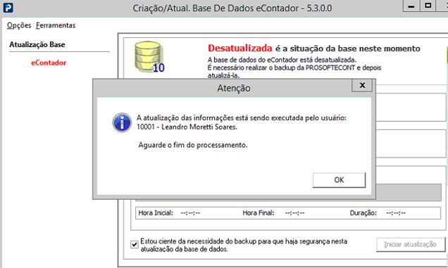 A2220-Econtador- Atualização da base apresenta"está sendo executava pelo usuário aguarde o fim do processamento"