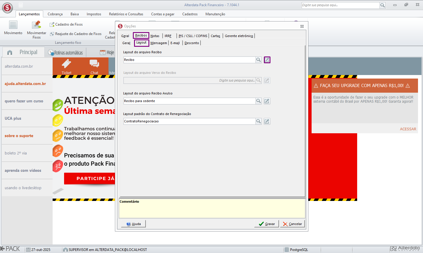 3° Acessa Recibos>Layout>Configurar Leiaute