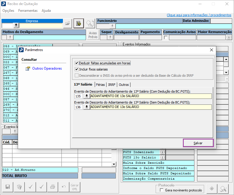 Este Artigo tem como objetivo orientar sobre os procedimentos a serem realizados quando ao alterar um evento nos Parâmetros do Recibo de Quitação e apresenta a mensagem: