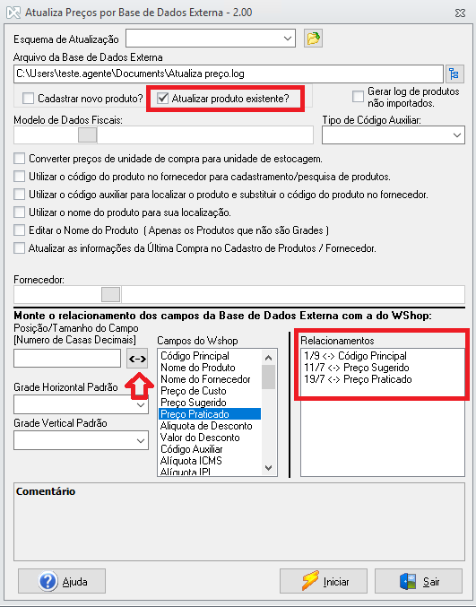 Após inserir a posição de cada campo correspondente baseado no seu arquivo basta clicar em Iniciar.