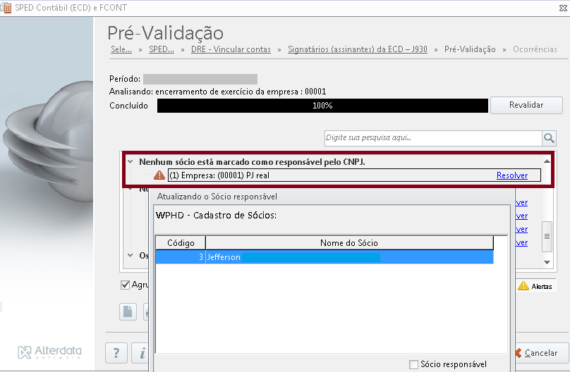 nenhum sócio marcado como responsável pelo CNPJ? sócio responsável pelo CNPJ na geração do arquivo ECD?