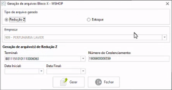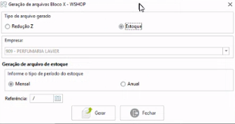 - Selecione a opção Geração Bloco X - Estoque e Redução Z.