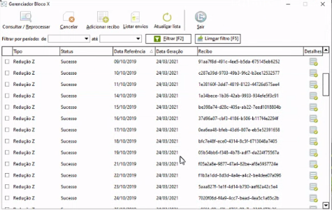 Caso o arquivo retorne o Status Erro no gerenciador bloco X, entre em contato com o suporte para correção.