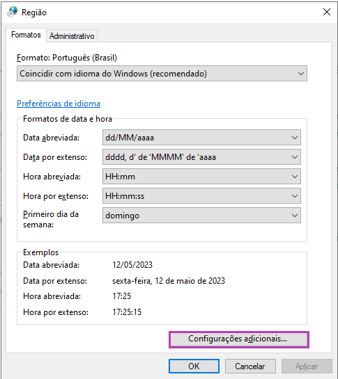 O erro é apresentado quando as configurações regionais da máquina estão incorretas.
