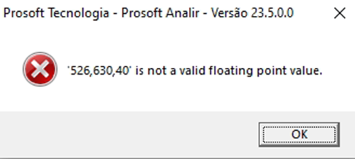C1646-Analir – Erro ao acionar Análise Caixa : Is not a valid floating point value