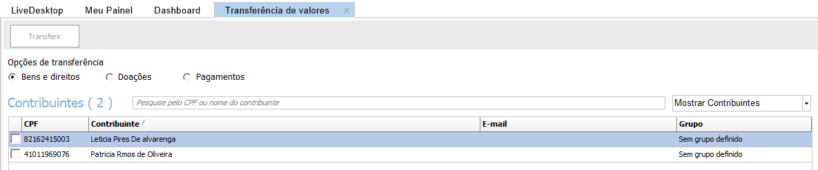 - Selecione o (s) contribuintes para o (s) qual (is) deseja realizar a transferência.