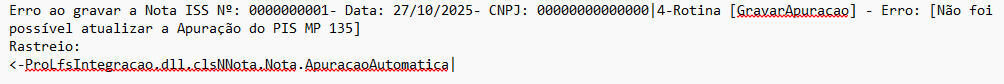 1- Ao integrar as notas pelo analisador é apresentado o erro Não foi possível atualizar a Apuração do PIS MP 135