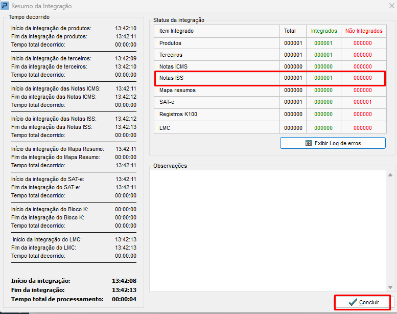 4- Após esse processo, ao integrar as notas no Analisador, elas são importadas com sucesso.