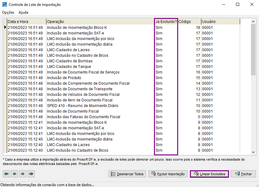 1 - Para exclusão no Analisador Fiscal, acesse: Gestão da Informação Digital > Analisador Fiscal > Rotinas Auxiliares > Controle de Lote