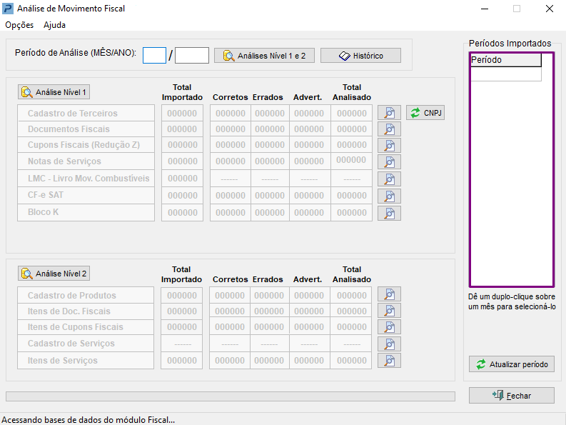 8 - Após realizar os procedimentos citados acima, será excluído os documentos importados pelo Analisador Fiscal e também pela Importação Segura, com isso, os períodos importados serão excluídos da Análise de Movimento Fiscal.