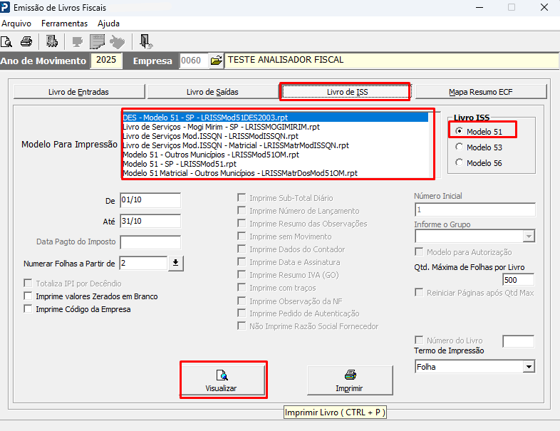 Contexto: Ao realizar integração de notas fiscais de serviços do Analisador Fiscal, as notas são apresentadas no Modelo de Livro incorreto, este documento apresenta os procedimentos para correção da situação.