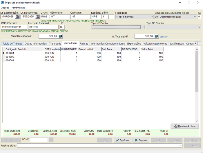 4 - Para consulta dos itens de mercadorias, clique na aba “Mercadorias”