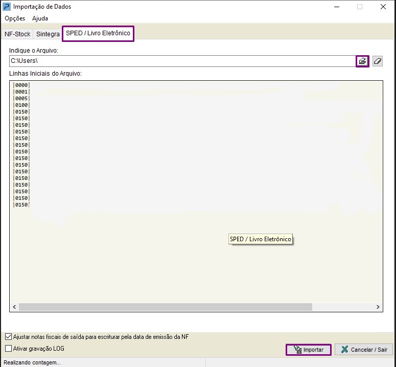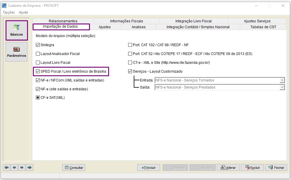 Informações Adicionais: O Analisador Fiscal realiza a importação de arquivos Livro Eletrônico de Brasília (Ato Cotepe) gerados por outros sistemas de ERP.