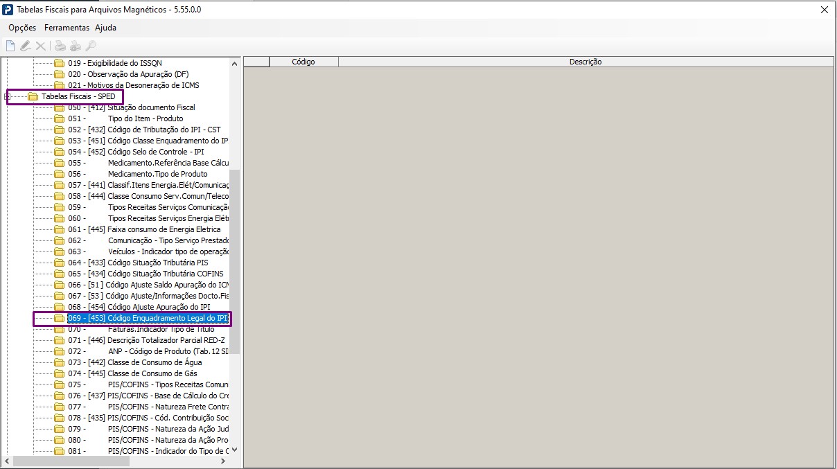 3- Clique na tabela 069 - [453] Código Enquadramento do IPI