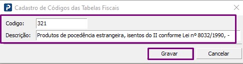 4- Clique em novo e realize o cadastro do código de enquadramento de IPI conforme o código apresentado no arquivo XML
