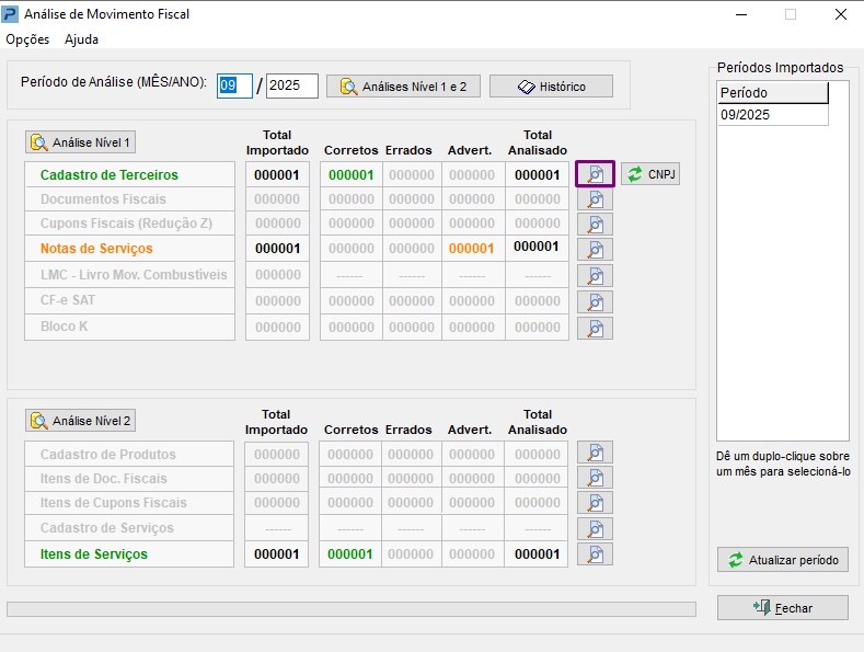 1- Acesse Gestão da Informação Digital> Analisador Fiscal> Documentos Fiscais> Análise