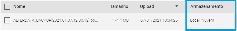 Através da coluna de armazenamento você poderá consultar o local em que seu backup está disponível.