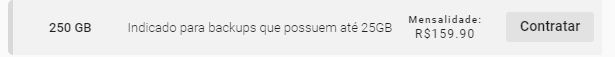 Caso o plano de 100 GB já não fosse suficiente para os backups de um cliente o próximo plano disponível era de 500 GB.