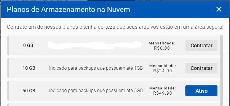 cancelar o plano de backup em nuvem , ele poderá fazer isso diretamente na aba de seleção e contratação dos planos.