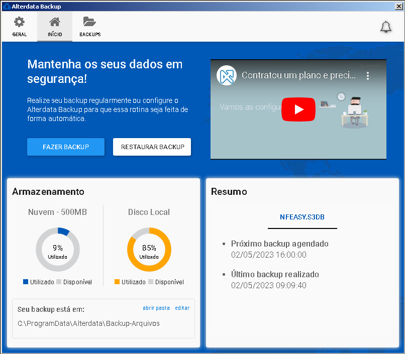 Fique tranquilo! A base NF Easy geralmente é bem pequeninha e 500 MB são suficientes para manter os últimos backups protegidos.