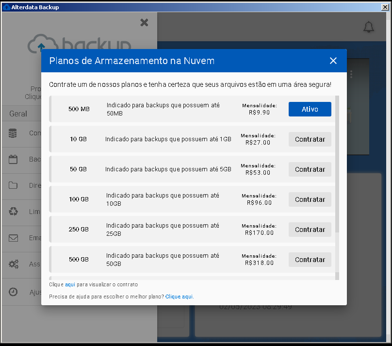 Nesses casos como as bases dos outros sistemas são bem maiores que as bases do Emissor, após os primeiros backups de outros sistemas será feito o upgrade automático para um plano maior. Fazemos isso por que é muito perigoso paralisar o envio para nuvem por falta de espaço disponível.