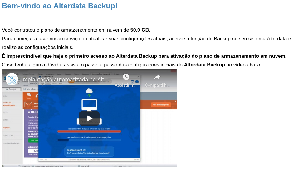 Então, criamos uma rotina para sempre que o Alterdata Backup, do servidor dele, reconhecer que houve uma contratação de plano ser enviado um e-mail de Boas vindas.
