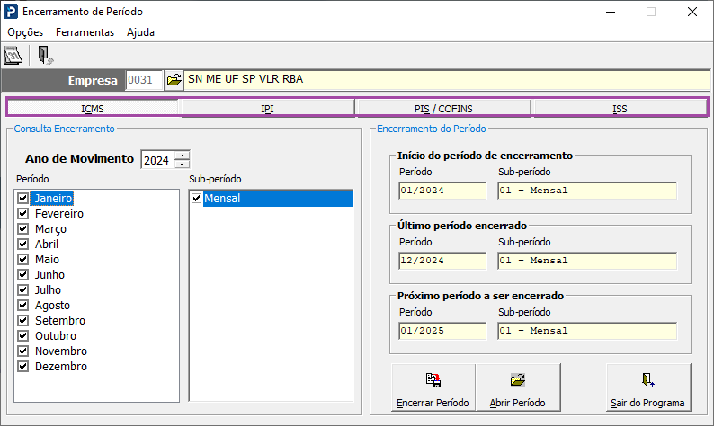 1 - Acesse: Fiscal> Rotinas Auxiliares> Encerramento do Período.