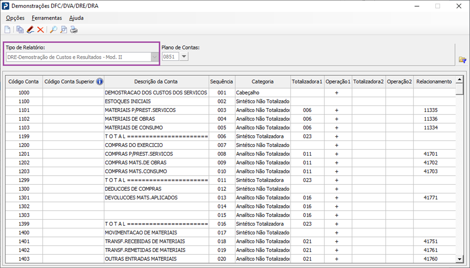5 – Selecione o “Tipo de Relatório – DRE – Demonstração de Custos e Resultados – Mod.II”