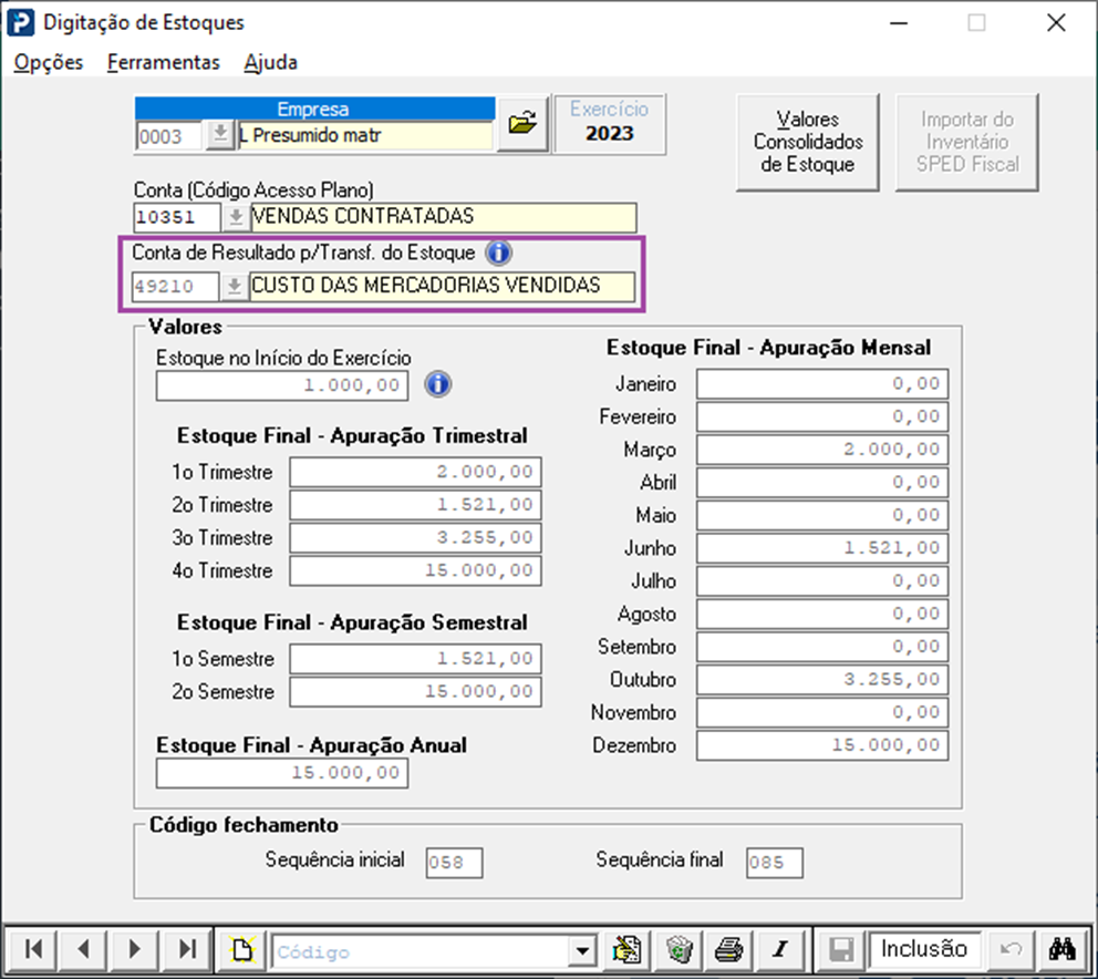 2- Acesse Contábil>Contabilidade>Encerramento>Digitação de Estoques.