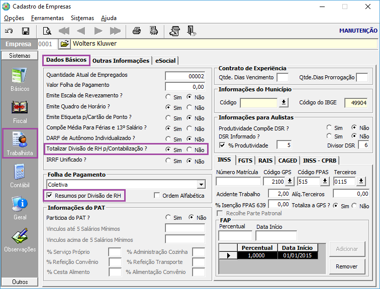 5- Informe a opção "Sim" no campo Totalizar Divisão de RH p/Contabilização.