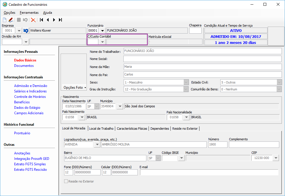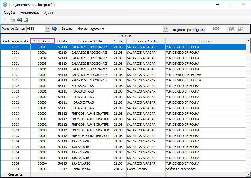 2- O sistema verifica no Cadastro de Funcionários se existe informação no campo C/Custo Contábil; se existir, será gravada no arquivo. Caso não exista, será considerado o Código Contábil do Cadastro de Divisão de RH a que o funcionário está vinculado; Caso não exista Código Contábil no Cadastro de Funcionários e nem no Cadastro de Divisão de RH, será gravado Código Contábil (00000).
