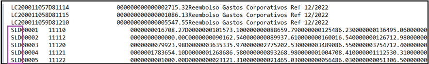 - Dados dos Saldos Contábeis: através desse tipo de registro (SLD), deverão ser importados os saldos iniciais e acumulados dos respectivos lançamentos. Os mesmos devem ser os últimos registros a serem inseridos no arquivo.
