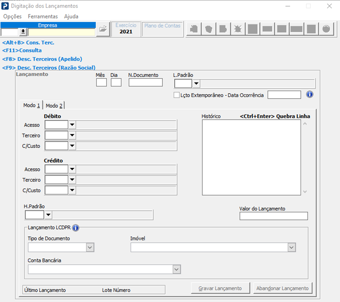 Importante: Se optar lançar as entradas e saídas do estoque por meio de lançamentos contábeis na rotina digitação de lançamentos acesse Contábil> Contabilidade> Processamentos> Digitação de Lançamentos